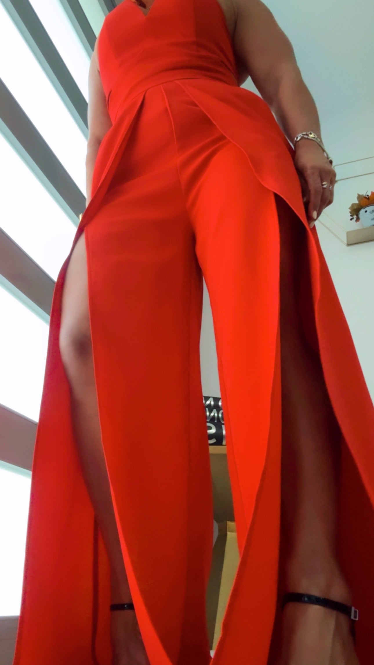 Red Jumpsuit with Cut-out Leg