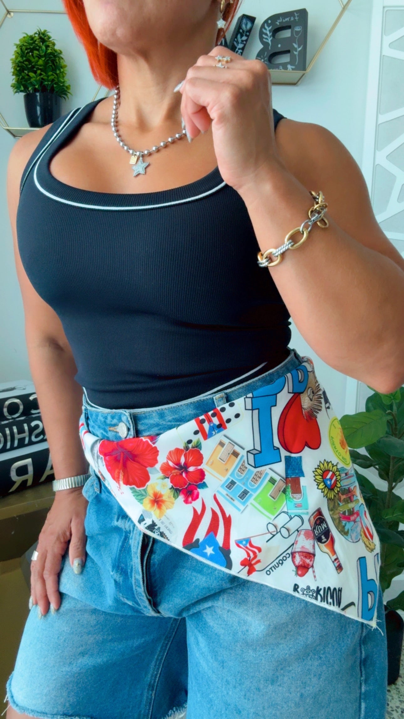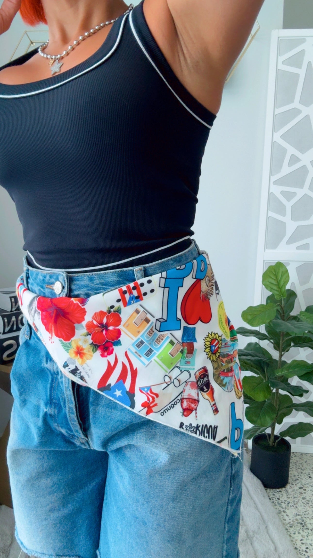 Pañuelo inspirado en Puerto Rico 🇵🇷 multiusos. Usalo como Scarf - Pañuelo - Top - Accesorio certera, etc 🇵🇷 (4 en 1 y mas. Tamaño XL